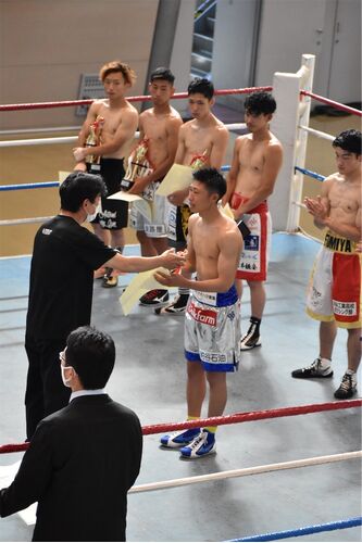 中日本新人王となった美濃巧人ですが、試合後の表彰式では技能賞を頂きました 決勝では特に秀でていた選手にMVP、技能賞、敢闘賞という三賞が別で用意されていて、これも経歴のひとつになります。 (左から技能賞・MVP・敢闘賞受賞の選手達です) 彼の場合は今…
